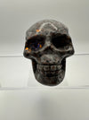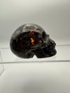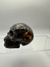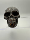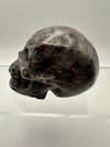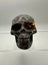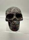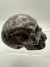 This striking skull carving showcases the mesmerizing beauty of syenite sodalite, a mineral that reveals its true magic under UV light. Watch as your skull transforms with an otherworldly glow when exposed to ultraviolet rays, creating an enchanting display that shifts between its natural earthy tones and luminescent brilliance. Perfect for crystal collectors, mineral enthusiasts, or anyone who loves a touch of mystical flair, this hand-carved piece makes a bold statement on any shelf or altar. Each carving is unique, capturing the natural variations and character of this captivating stone.